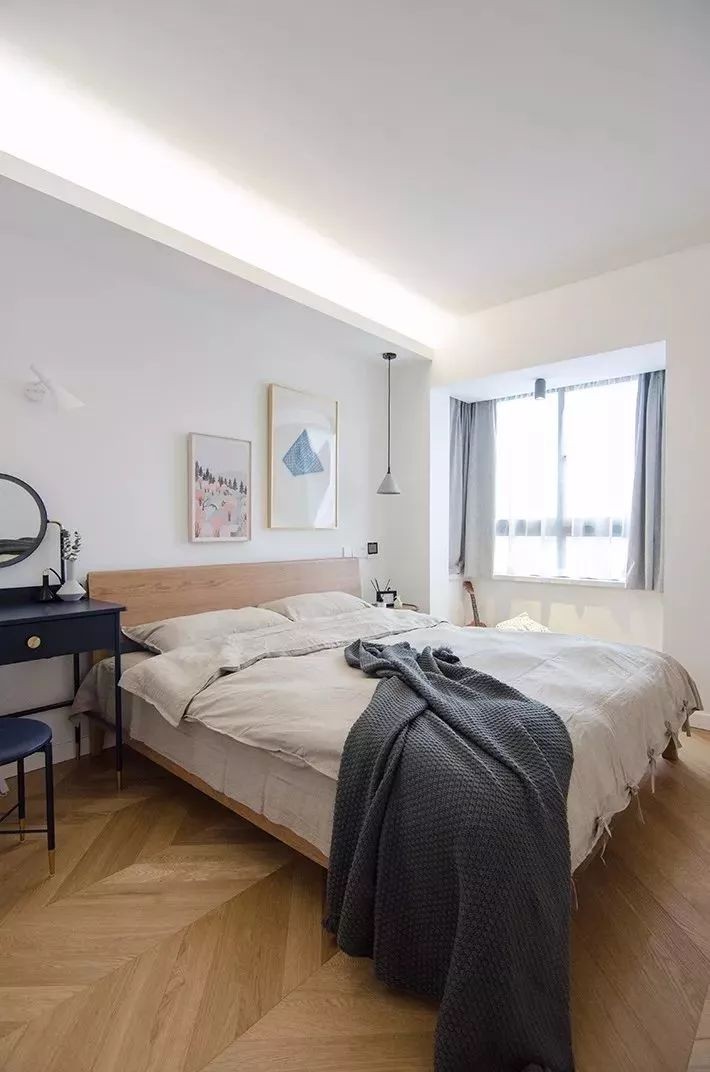 家里做了一个卧室,面积也会比较宽敞一些,在整体的配色上以简约为主,飘窗砸开改成了一个休闲区,顶部还加上了藏光的设计。
