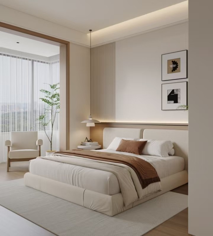 浅调空间里,柔和光线漫洒,一张床承载静谧,绿植与挂画点缀,把休憩时光晕染成治愈的诗,每一寸都藏着对松弛生活的注解 。