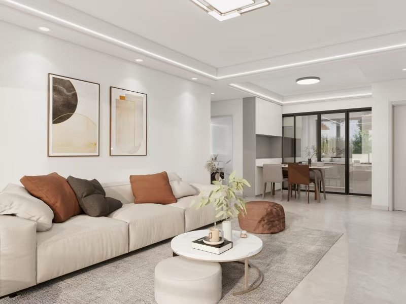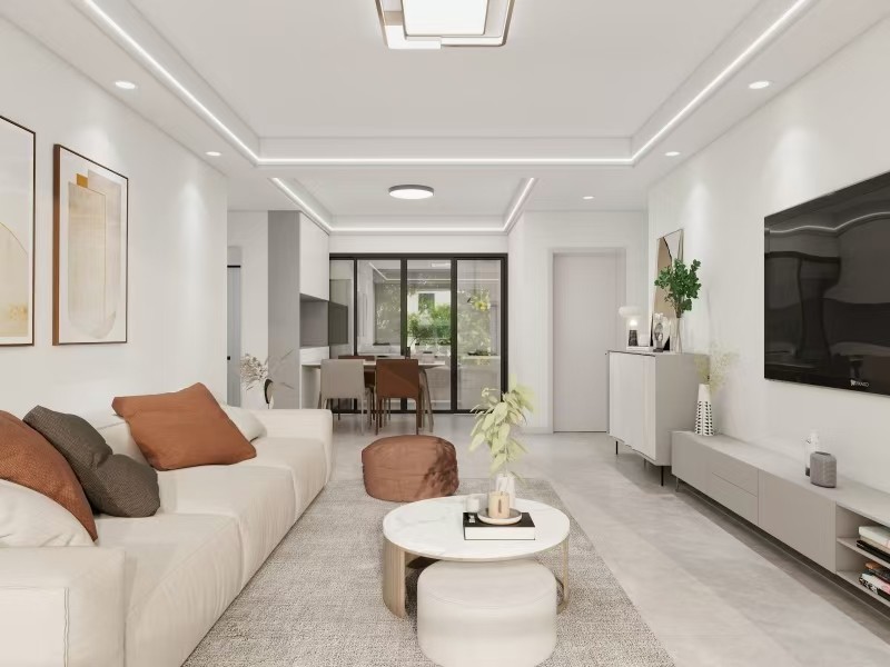 浅白空间作底,暖棕抱枕点睛,通透明亮的格局里,阳光与绿意共赴,把生活晕染成治愈系日常 。