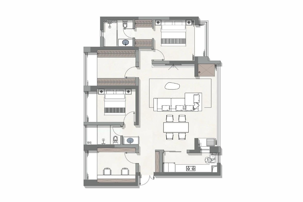 便捷烹饪、用餐的一步到位,各个空间功能独立的同时保持紧密的互动关系。