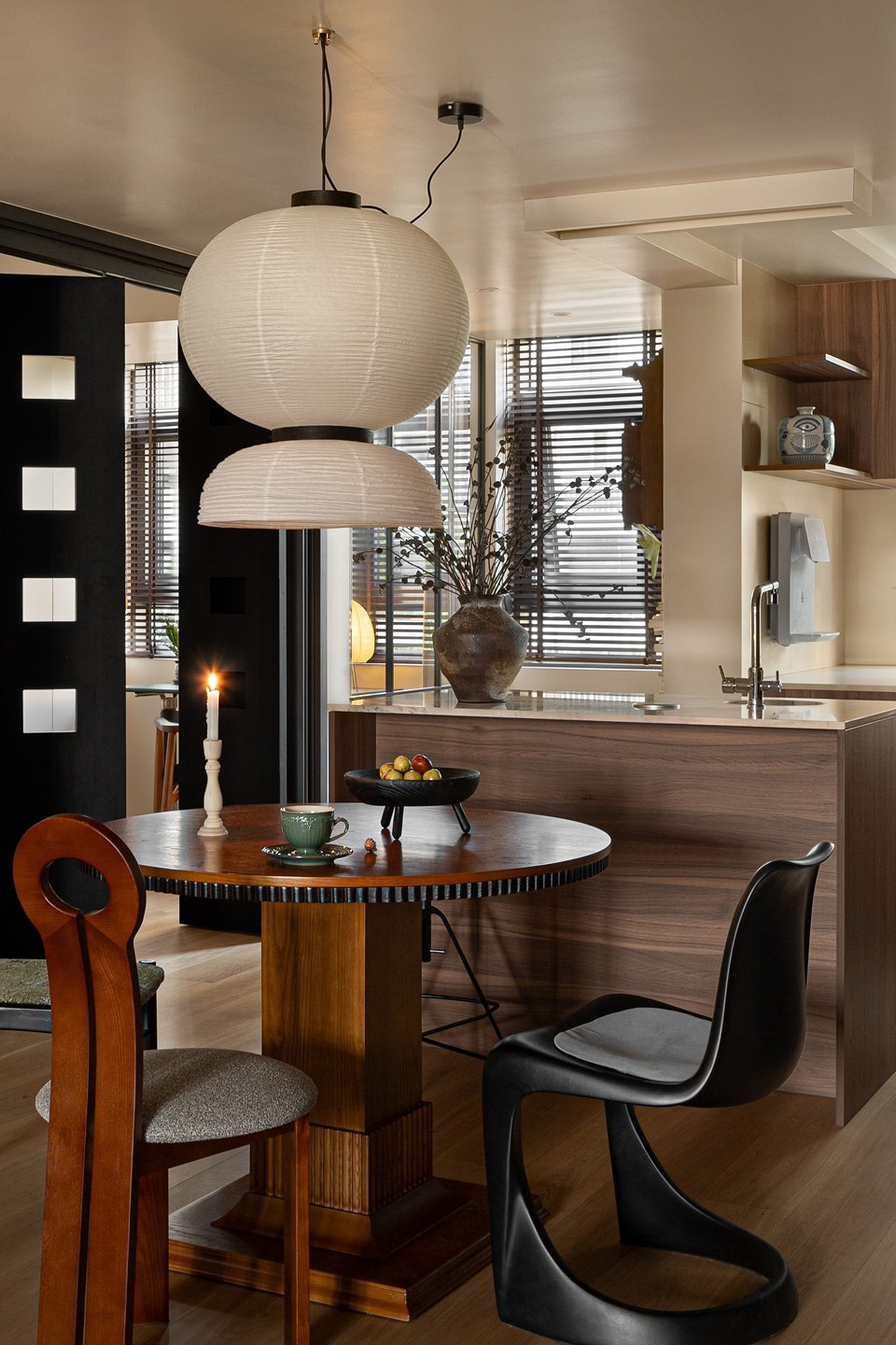 餐桌椅造型各异,为视觉注入灵动的节奏感,也映照出屋主不被风格束缚的自由态度。