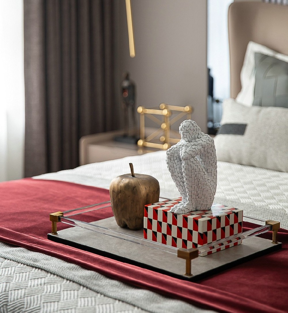 主卧的方案体现精致、雅奢、从容的生活方式,提取自然及生活中的美学元素,构筑出艺术氤氲的舒适空间。