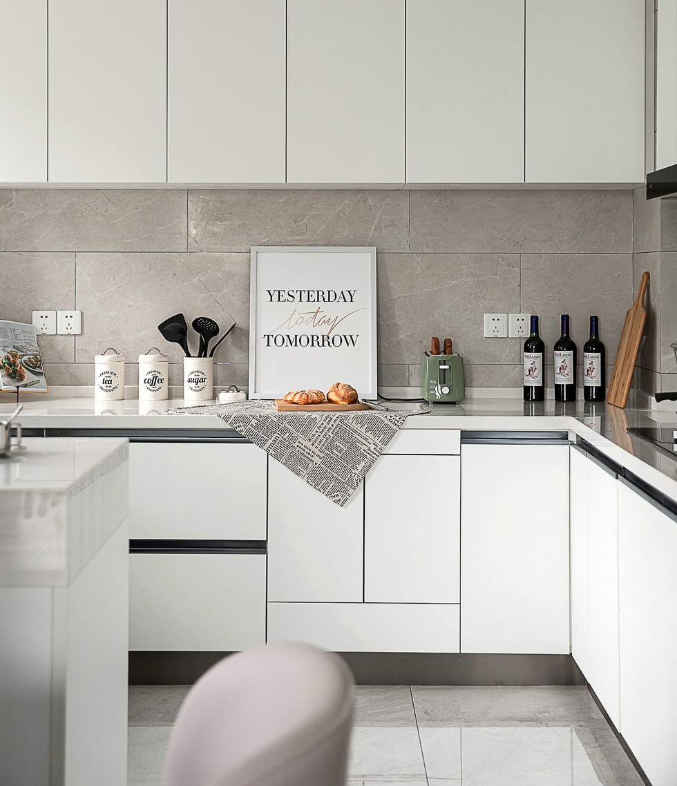 厨房简洁的造型搭配小清新质感厨具,显得空间清新舒适,当阳光拥入,幸福显得格外耀眼。