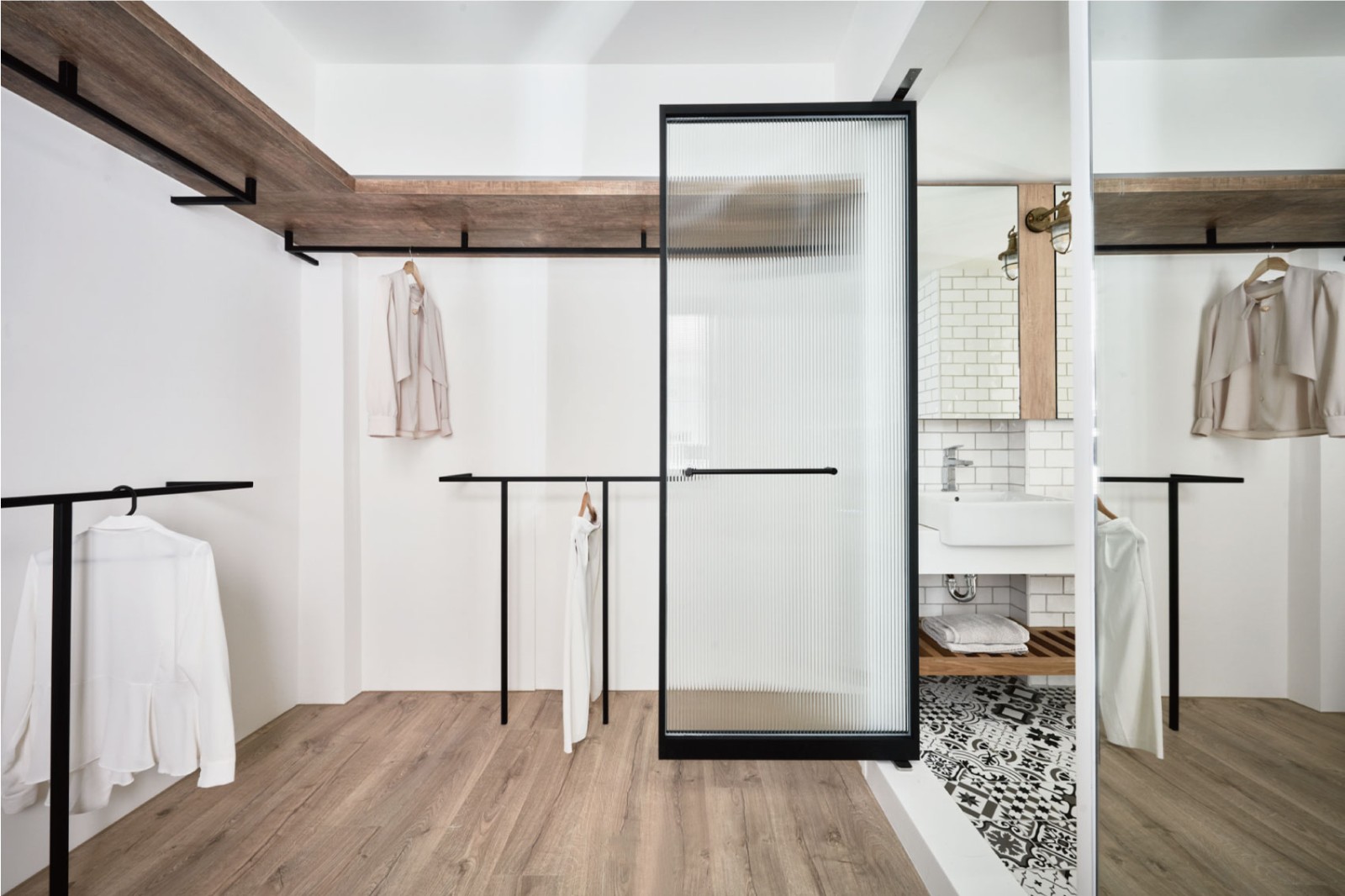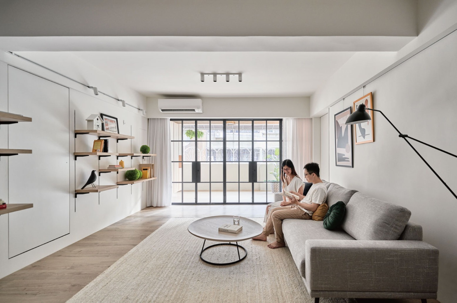 这套住宅是轻复古+现代简约的混搭风,在“干净通透”的基础上,用细节藏了不少复古质感,既清爽又有温度: