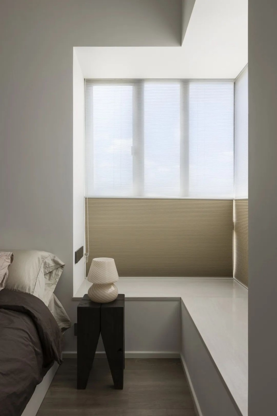 卧室内保持了和公共区域相同的调性,安静,干净