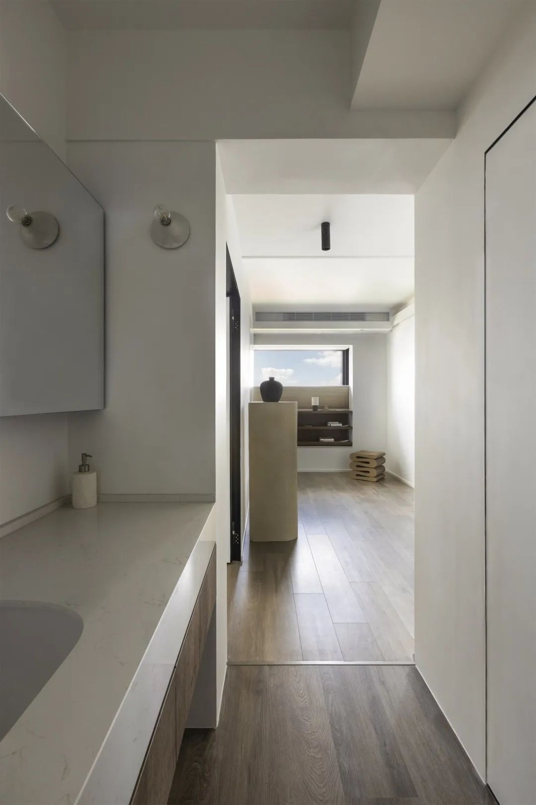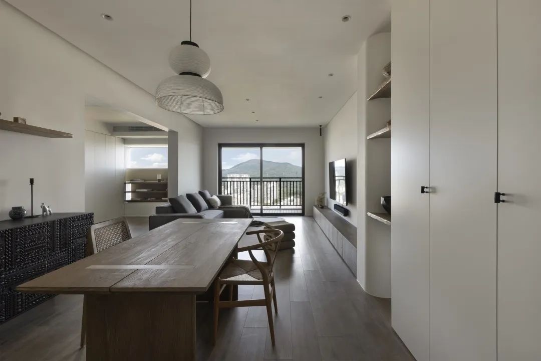 拆掉过道原有房间的墙体 引入更多的光线和风景 让室内的每一处都散发出柔和通透的质感