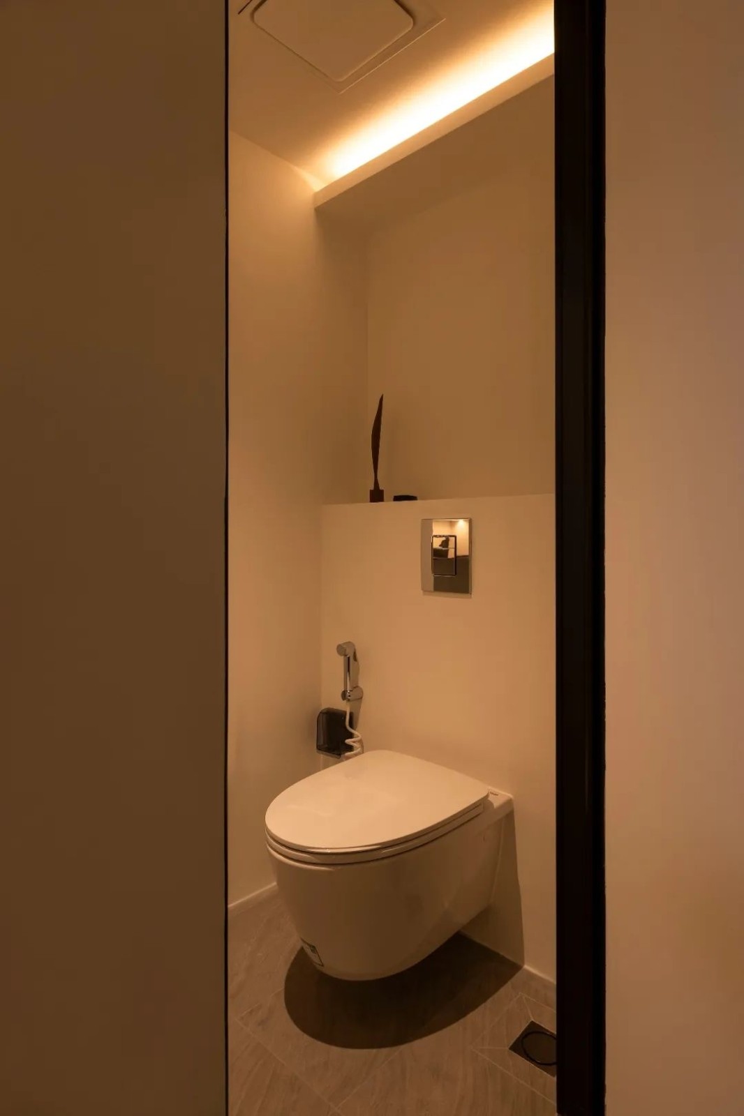 暖光下三分离的卫浴空间