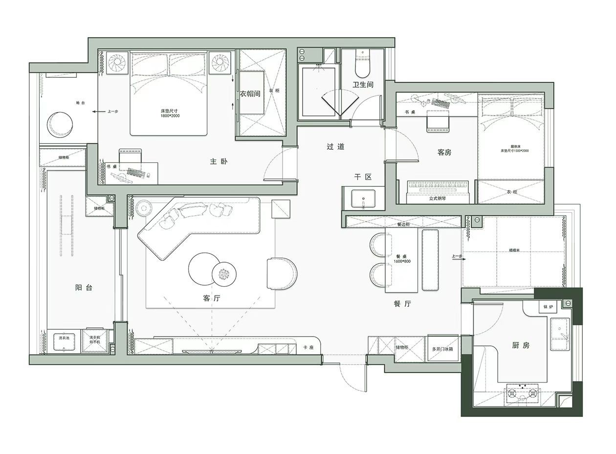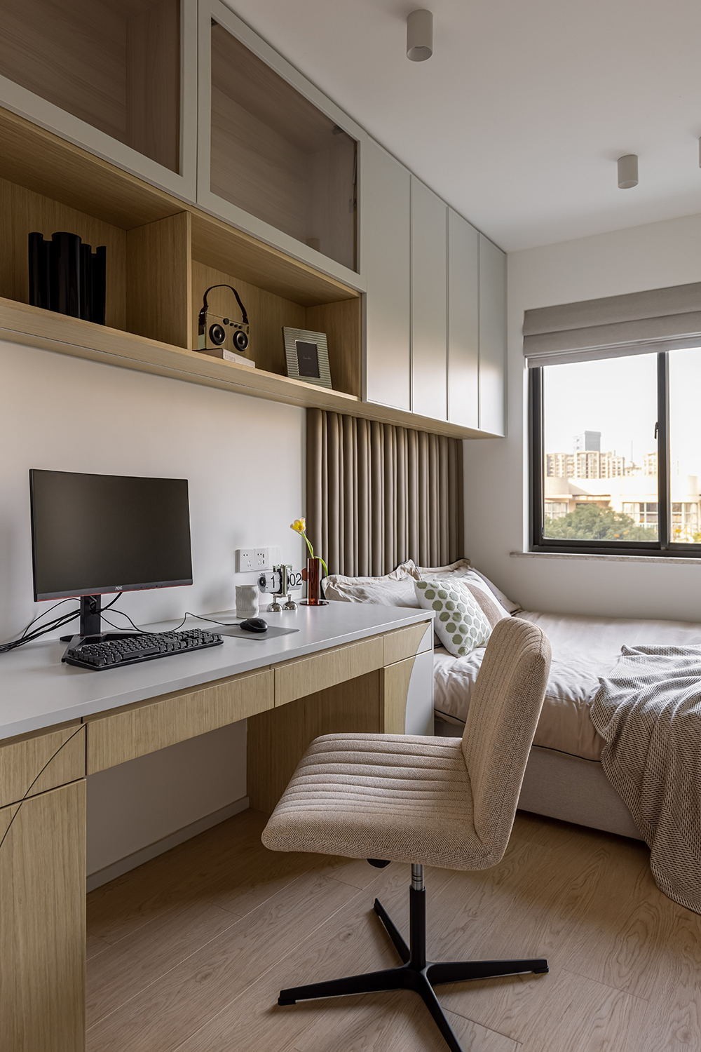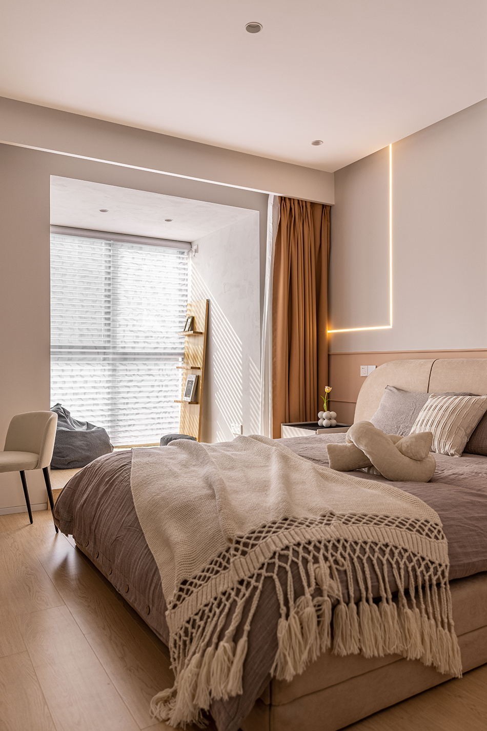 用于婚房。男业主有着理科生的理想睿智,女业主则有着文艺青年的浪漫情怀,经过沟通,我们致力于为他们打造一个理性与感性并存的温暖居所,现代空间中大面积运用暖白与原木,搭配浅草绿,趣味黄色系,达到温馨且有格调的居家氛围。