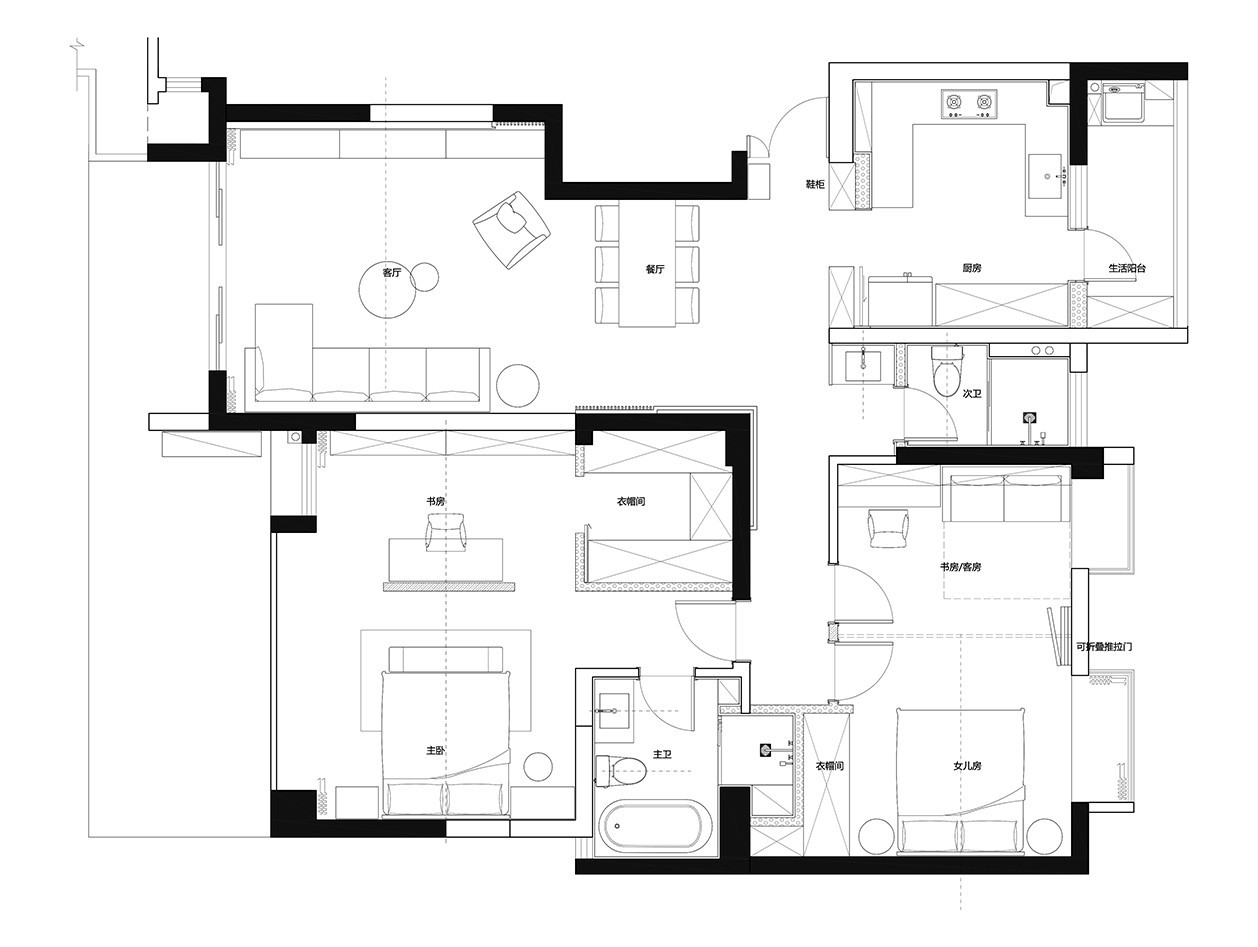 家,不仅仅是栖居之所,更是灵魂的港湾。客户女儿在北京读书学习,在房子方案沟通时客户最在意的莫过于女儿的房间。虽然女儿因为学业与工作飞的越来越远,但是在我们沟通的过程中感受到了作为父母对女儿浓浓的爱意,也让我们对方案的设计加倍的用心。借设计之手去传达爱意,是作为设计师的幸福之一。