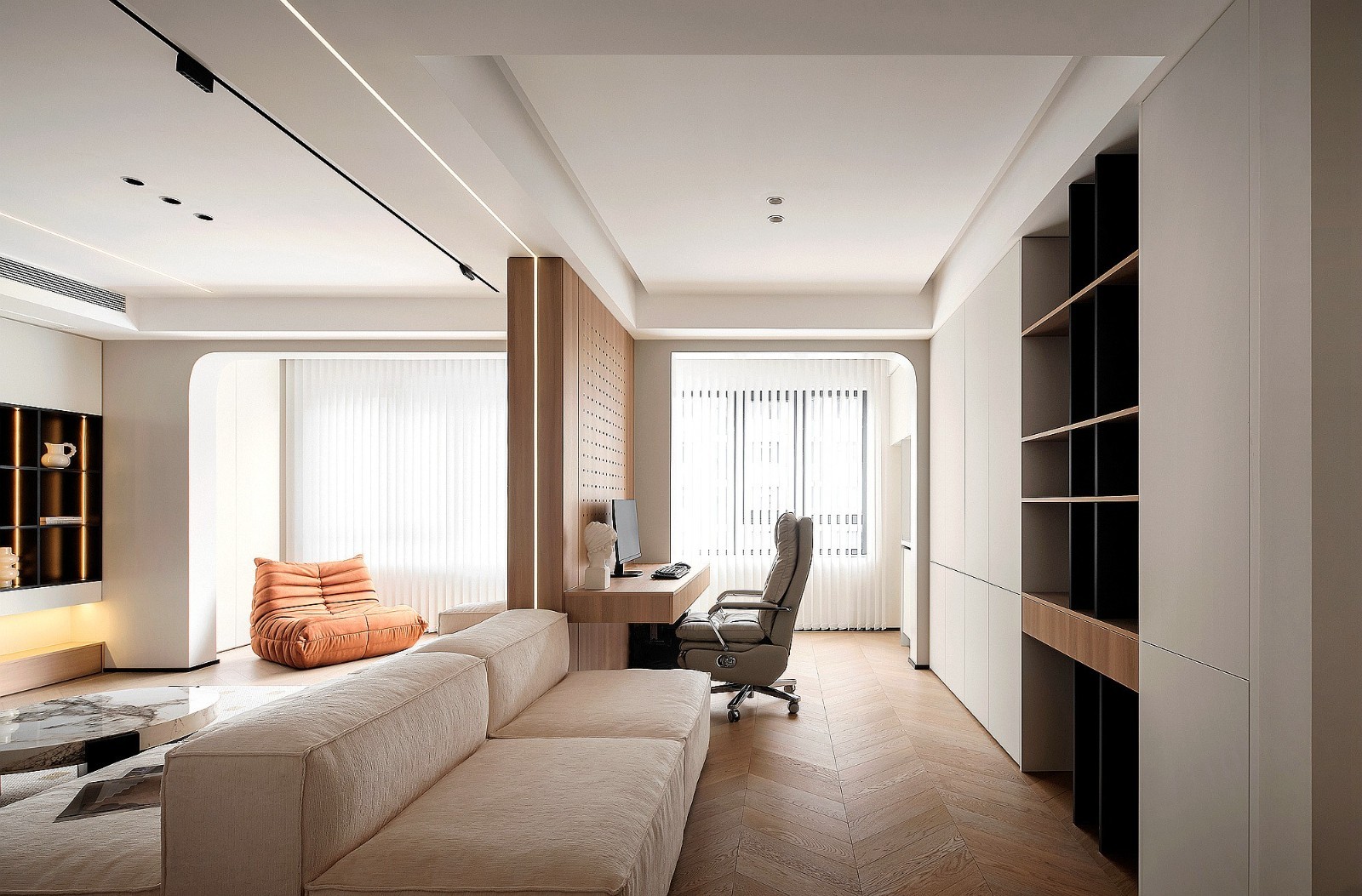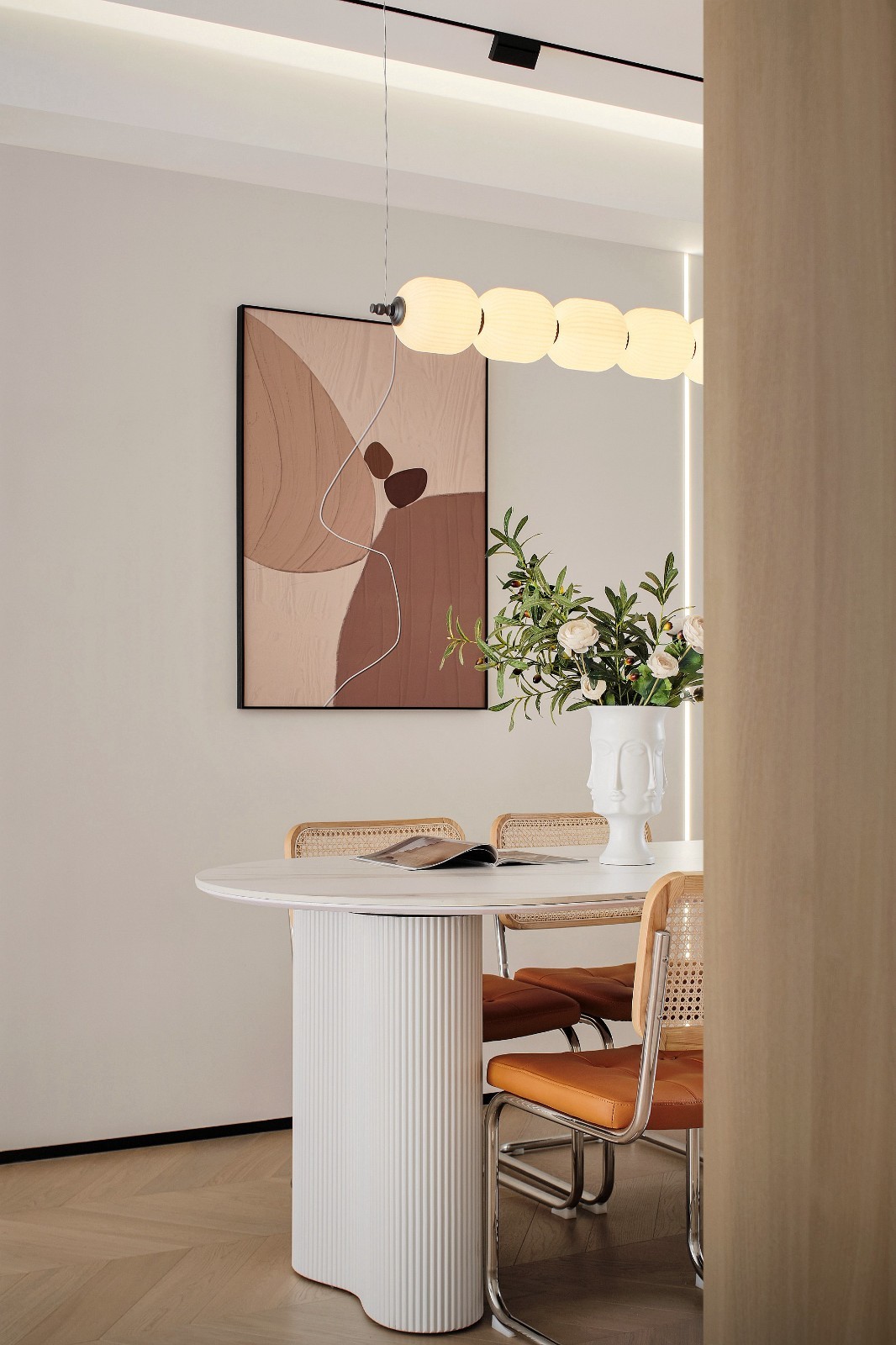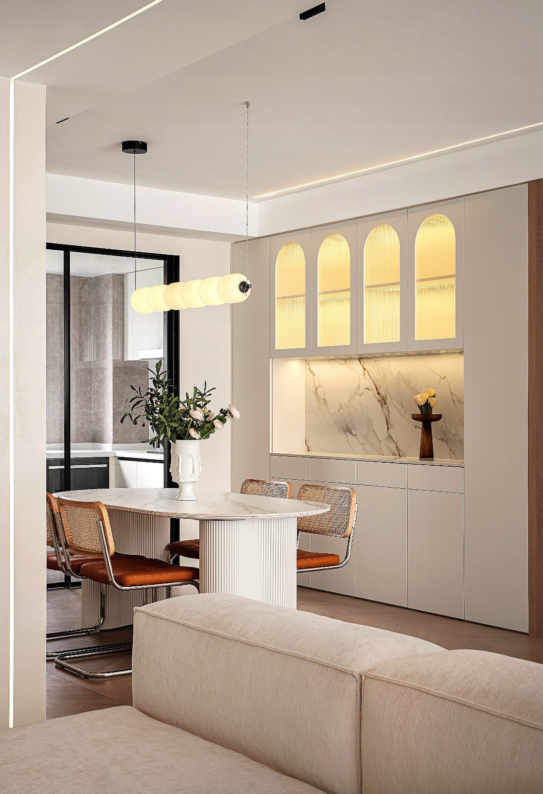 客餐厅一体设计,圆拱形造型增加灵动性。