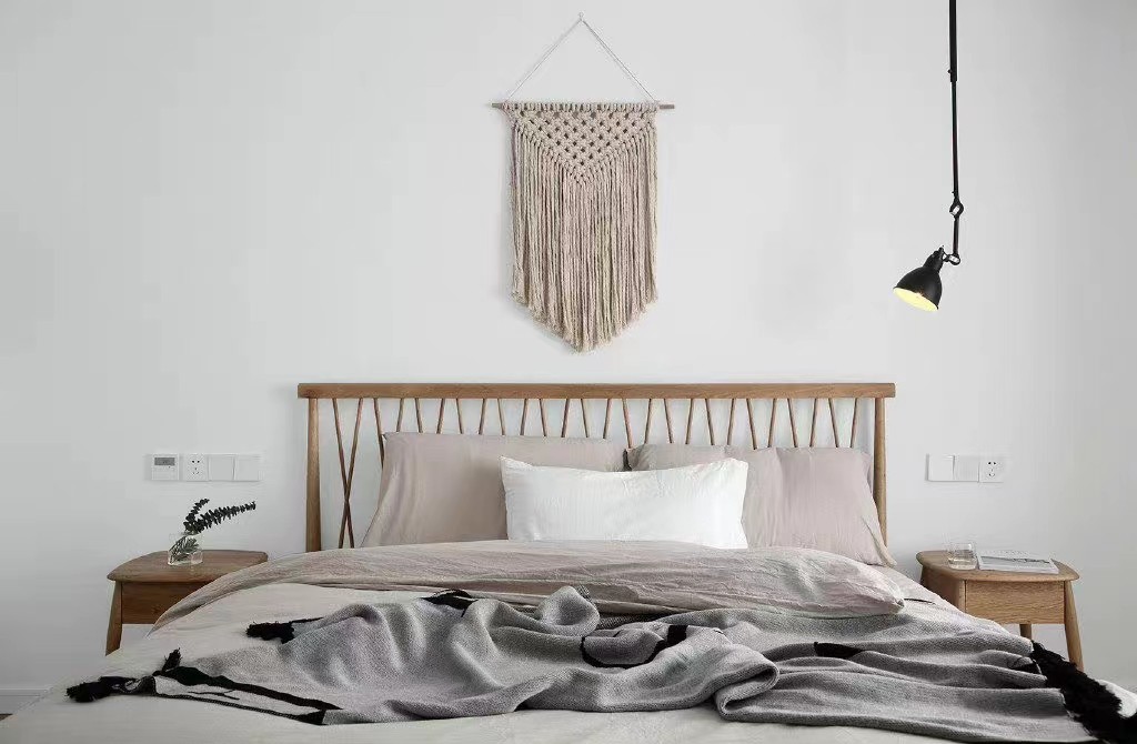 卧室采用原木风的家具。