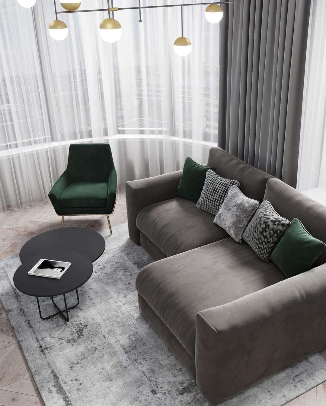 大大的窗户让深色调客厅明亮大气。