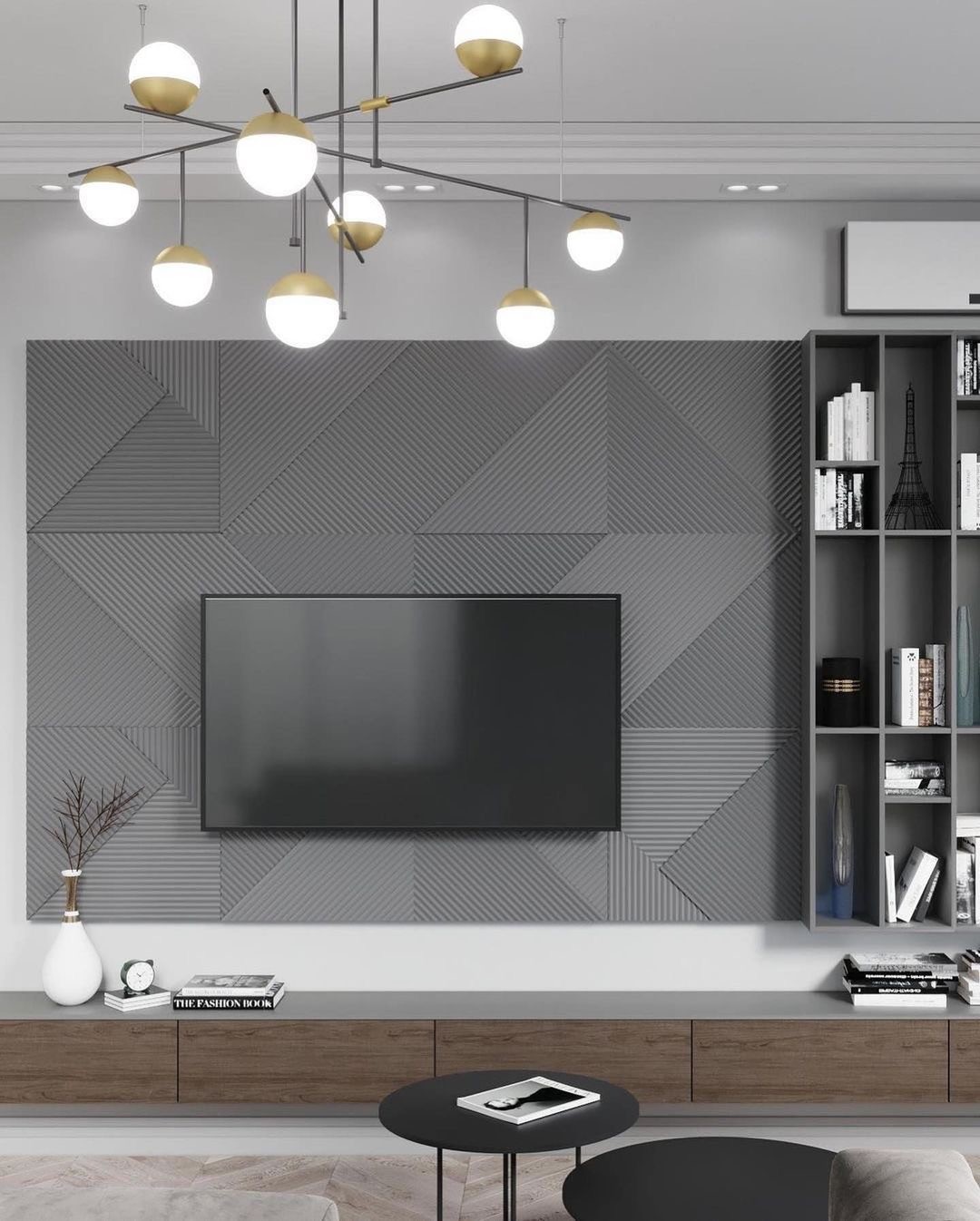 电视墙上打造了书架,可以增加收纳。