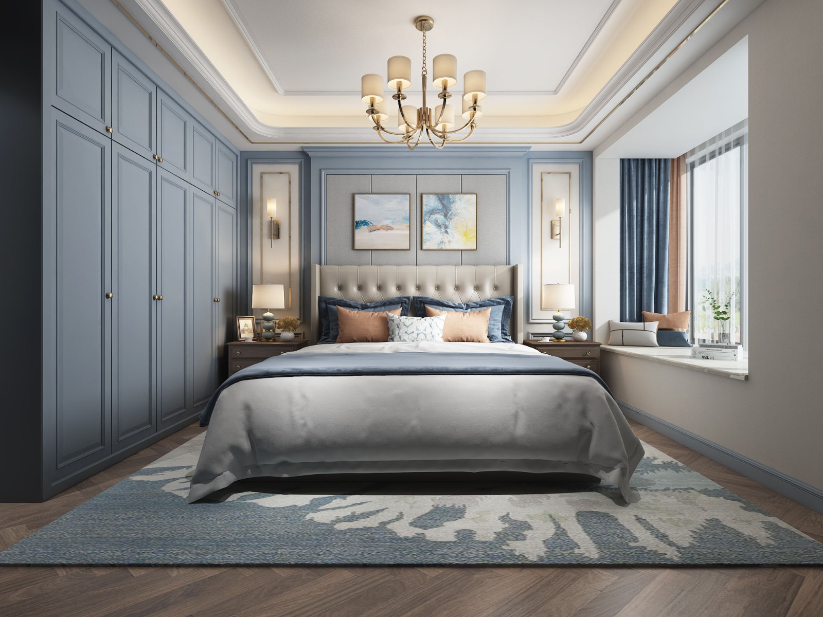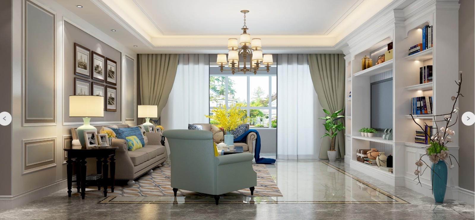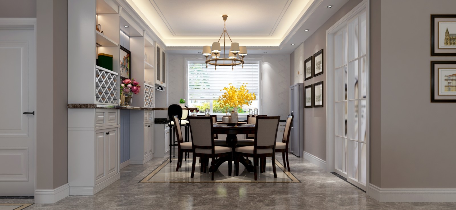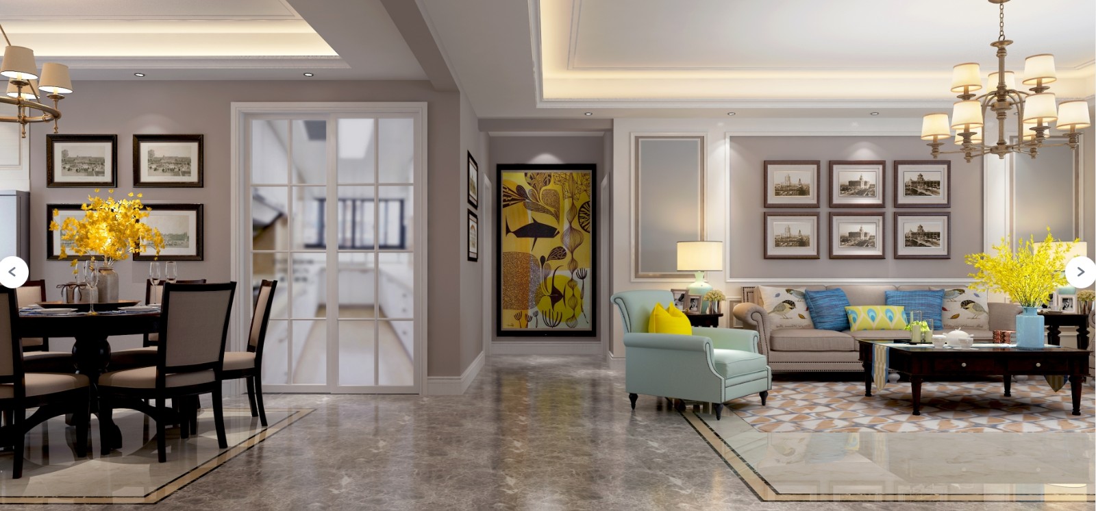 整体风格为美式,客餐厅做拼花处理,替代地毯,卫生好打理