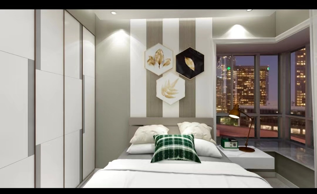 光滑的表面、中性的色彩和简约的装饰赋予这间卧室温馨的外观。