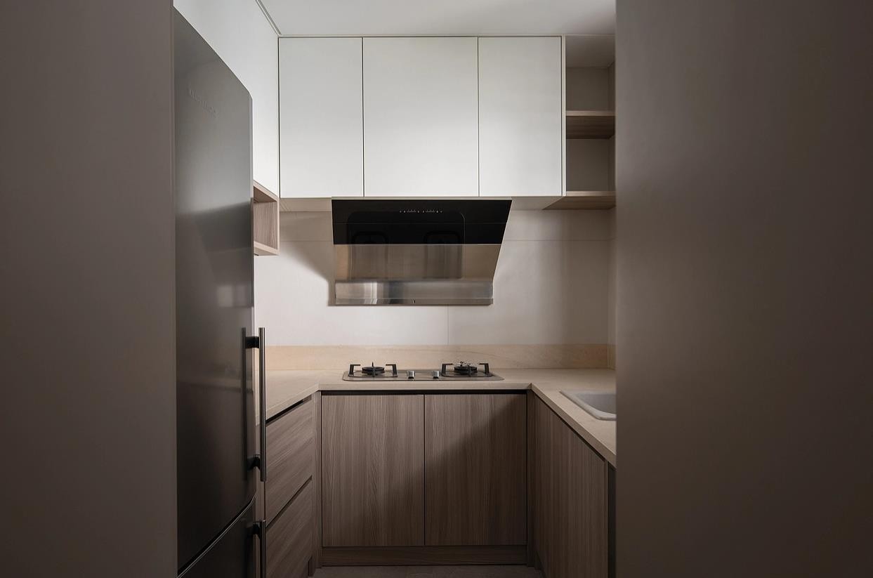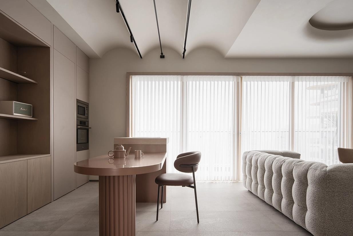生活处处都是有棱有角,承载了自然而然的发生。但是“安全”,依旧是设计师为小朋友更为细致的考虑,在餐桌一侧用圆柱作支撑,一体式的岛台设计,简化布局,在不失质感的前提,去简约高效的释放更多空间。