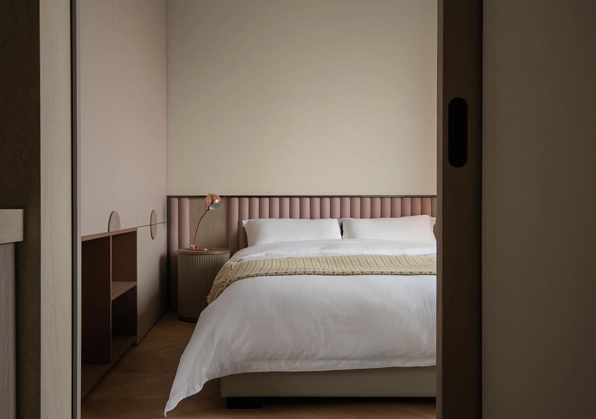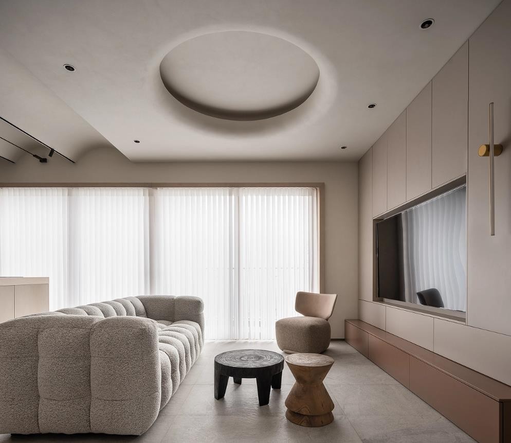 在简洁干净的米色空间里,开阔的自然光产生互动效果,空间内外保留了一种动态关系。