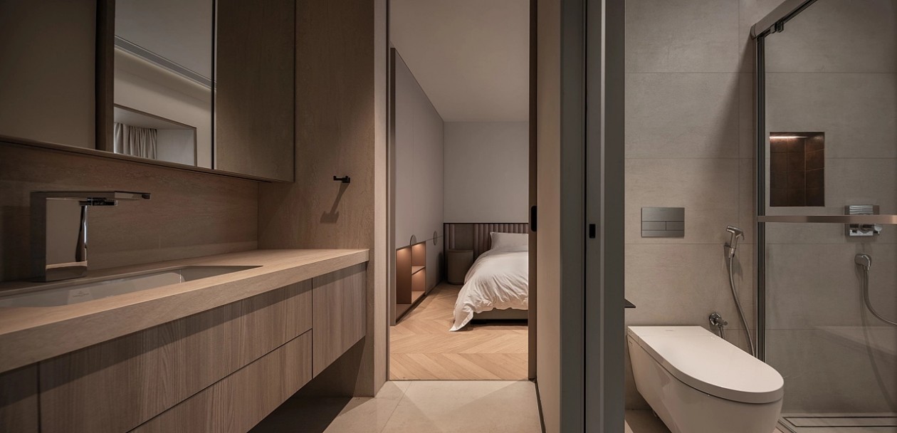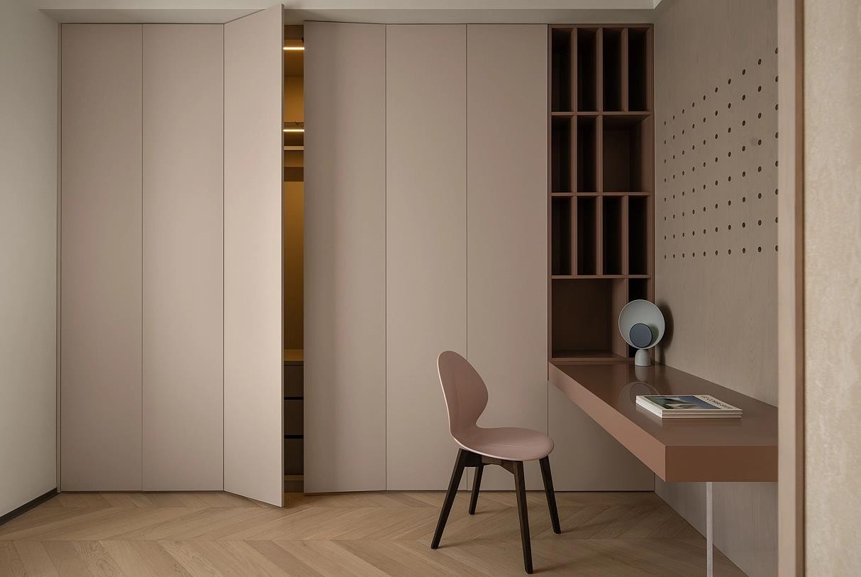 介于儿童房与书房之间的卫生间,是一个很好的缓冲地带。这里将儿童房与书房打通,以移门连接,与客厅形成环形动线,把小孩的活动范围拓开,使空间更加灵活开敞,而移门也营造了开放性与私密性并存的空间,拒绝约定成俗。