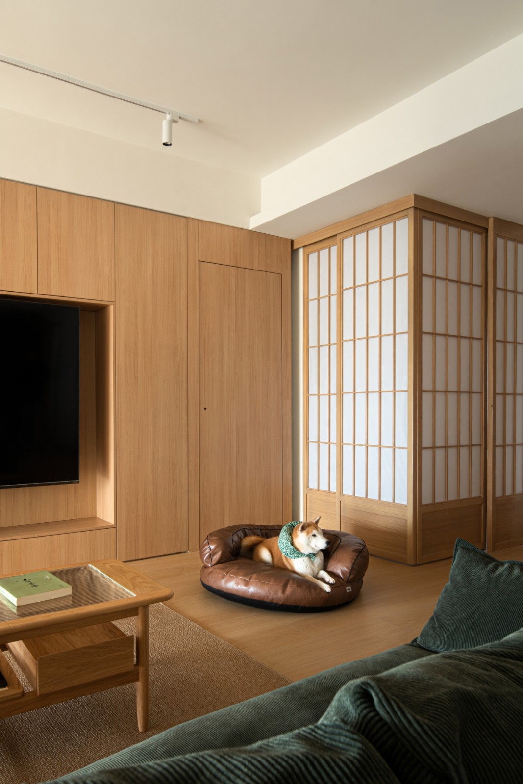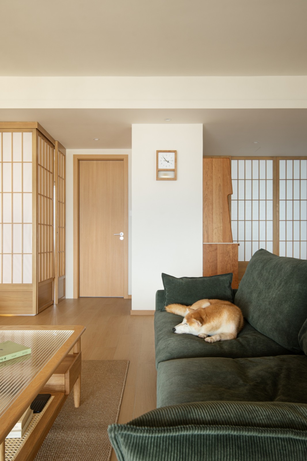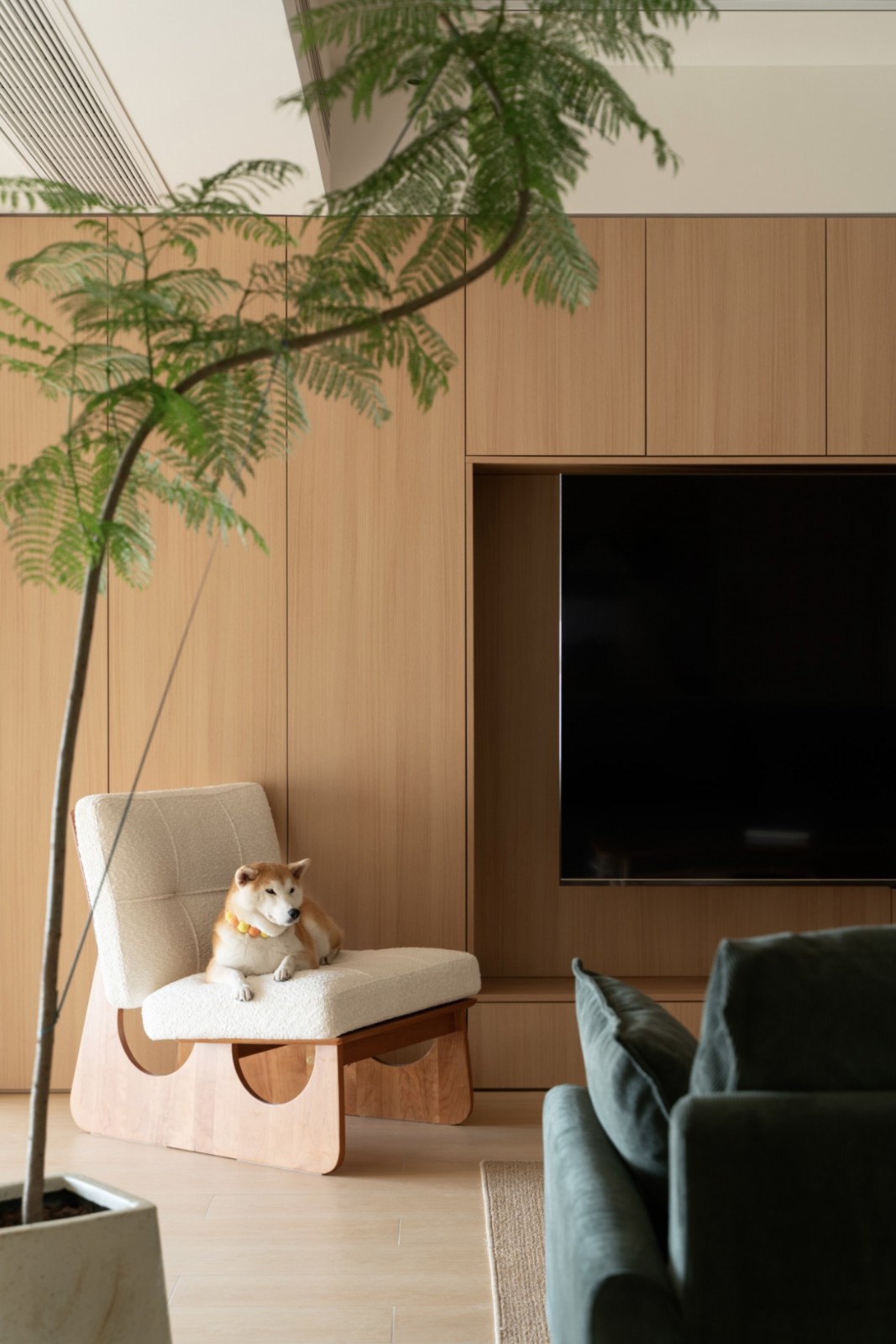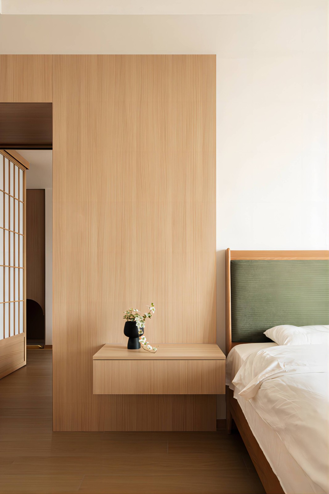 墙面柔和的色调,搭配原木色掉的木质家具,错落有致。