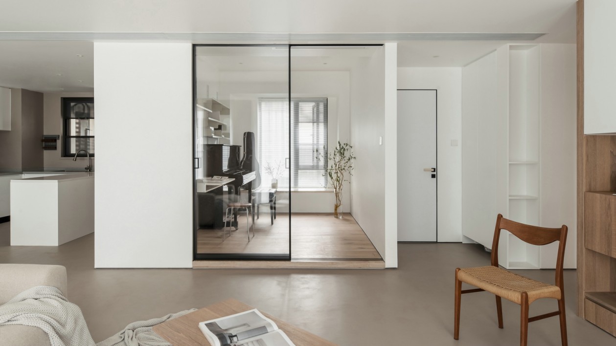 橱柜一直延伸到餐厅,墙体的铝制隔板看起来轻盈,承重力很强