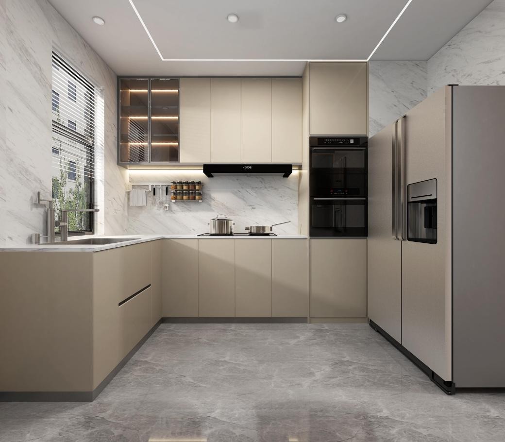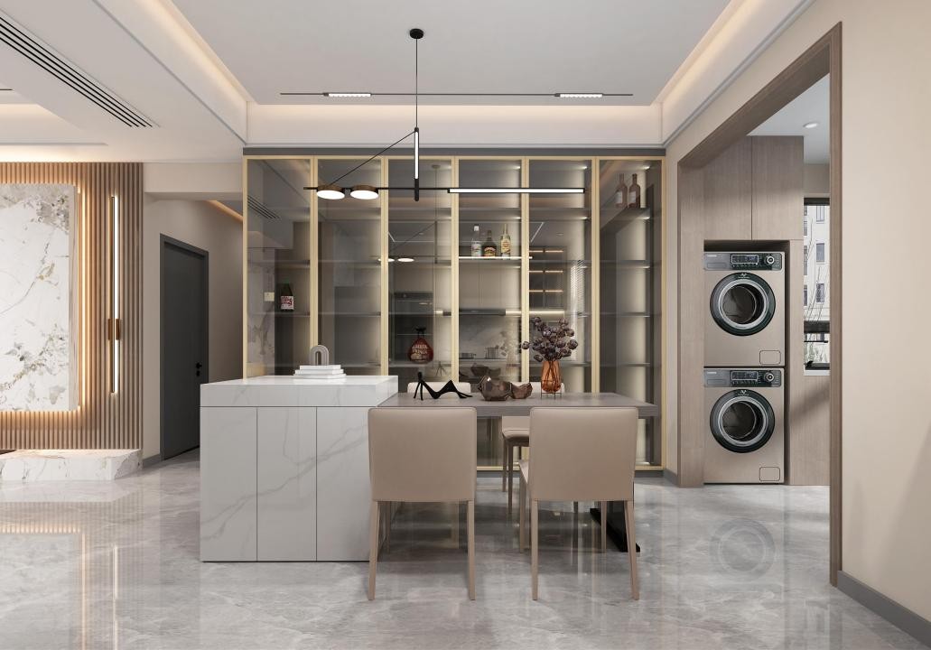 浅黄色的瓷砖 使整个空间看起来很暖。