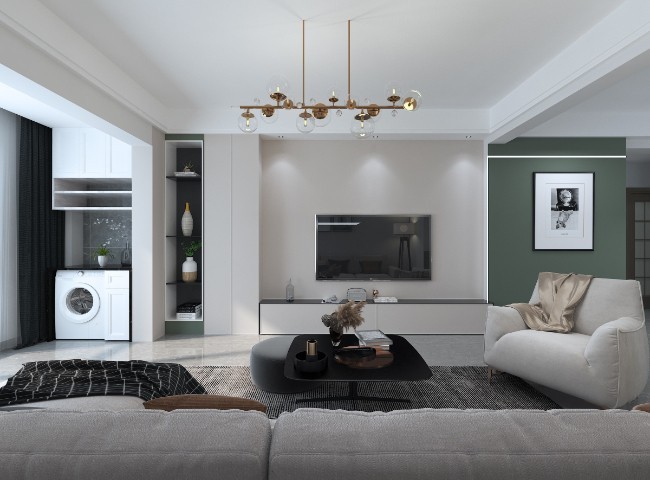 客厅顺着原本的结构进行了相应的优化调整,使空间动线更加开放流畅