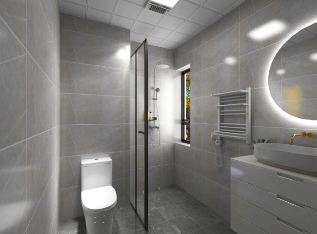 卫生间两者之间用玻璃推拉门作为隔断,干湿分区,宽敞好用