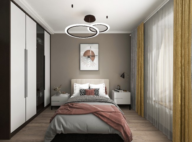次卧,简约的空间形态呈现出谦逊、温和的气质,每个细节的把控都可以说是对生活与艺术美学的微妙平衡