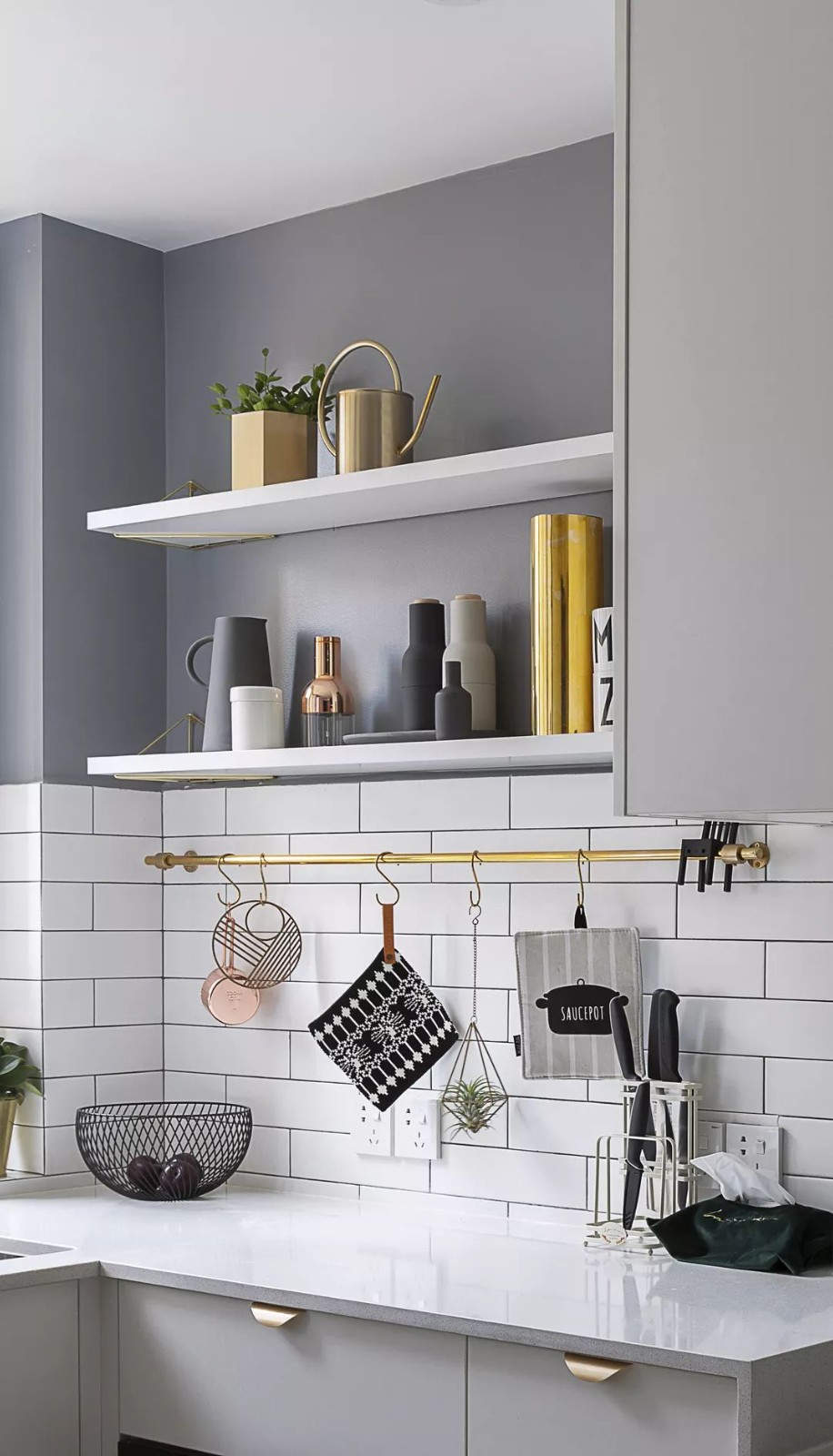 厨房手工砖搭配灰色橱柜显B北欧风格