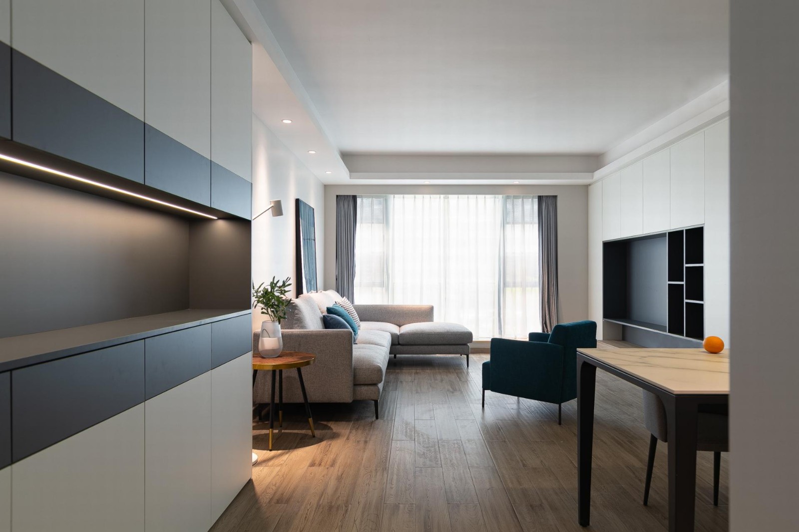 整面的玄关柜体应该怎样设计?从入户位置看向玄关柜体,空间里白与深棕相间的颜色搭配,犹如剔透的浪花洒落于礁石,整面空间干干净净,简单舒爽的视觉之感油然而生。