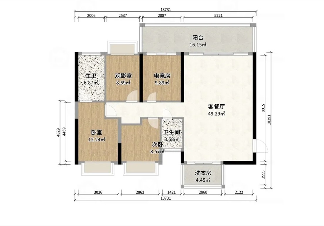 本户型只要由4室2厅2卫0厨构成,主要风格为现代简约、轻奢、家装。