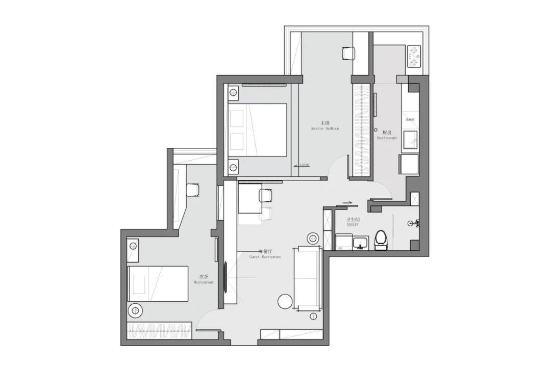 90平米的两居住宅,常住是一家三口,屋主对未来的房子要求就是收纳空间一定要多一些;原来的房子装修比较老气,室内比较阴暗,改造很重要的一点就是希望空间明亮开阔一些。