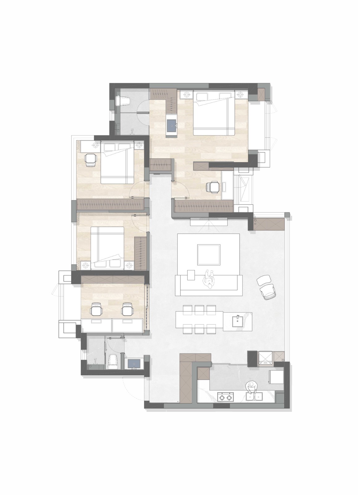 木质色调打造成熟稳重的主卧 色块对比构成经典感十足的视觉效果 为归来的家人提供一个安心休憩的港湾