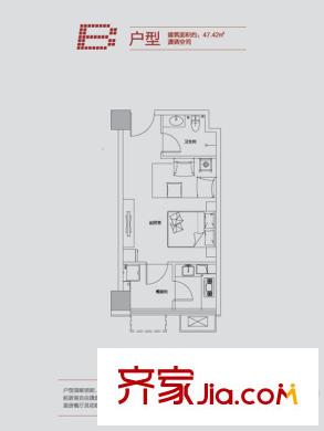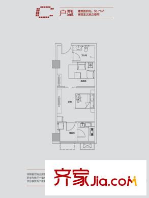 未来像素已售完公寓C户型 1室1厅1卫1厨