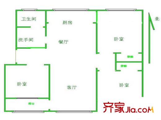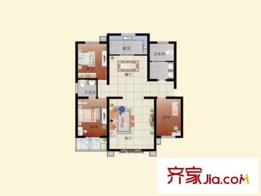 幸福家园户型图139平米户型 3室2厅2卫1厨