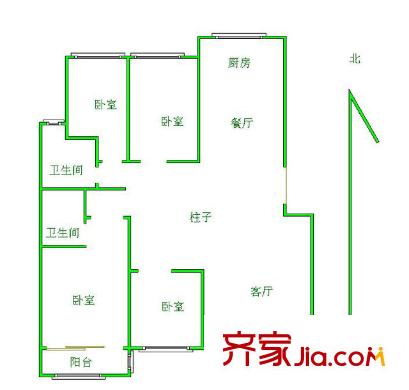 钻石小区户型图四室两厅 4室2厅2卫1厨