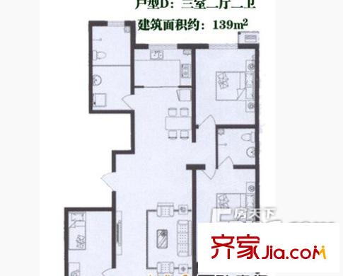 浩达公寓户型图三室两厅 3室2厅1卫1厨