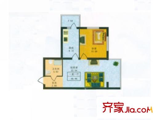 冬奥村户型图一室一厅户型 使用面积48.46平方米 1室1厅1卫1厨
