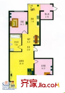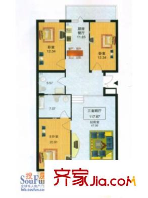 冬奥村户型图三室户型 使用面积117.87平方米 3室1厅2卫1厨