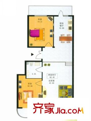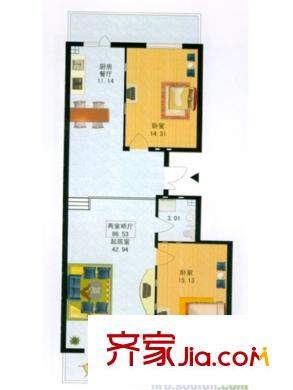 冬奥村户型图二室户型 使用面积83.11平方米 2室2厅1卫1厨