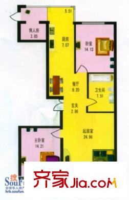 冬奥村户型图二室户型 使用面积92.40平方米 2室1厅1卫1厨