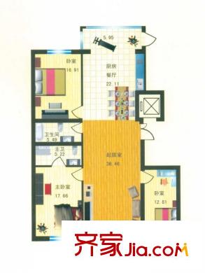 冬奥村户型图三室户型 使用面积113.16平方米 3室1厅2卫1厨