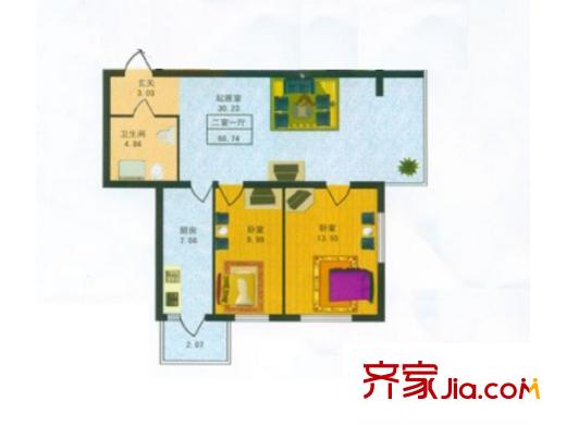 冬奥村户型图二室一厅户型 使用面积68.74平方米 2室1厅1卫1厨