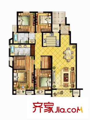 中锐星尚城一期花园洋房M户型 4室2厅2卫1厨