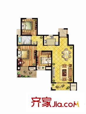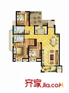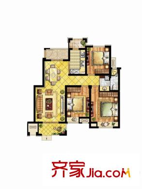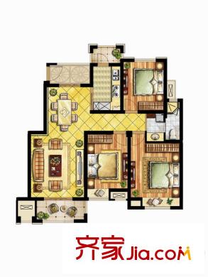 中锐星尚城一期花园洋房Q户型 3室2厅1卫1厨