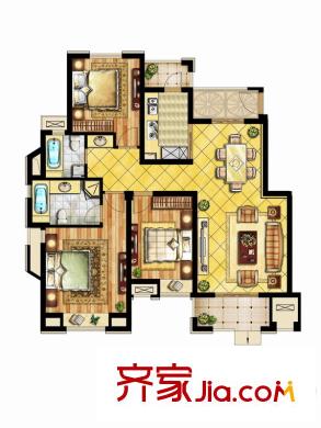 中锐星尚城一期电梯多层J户型 3室2厅2卫1厨