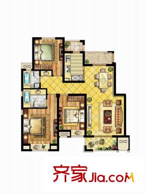 中锐星尚城一期花园洋房N户型 3室2厅2卫1厨